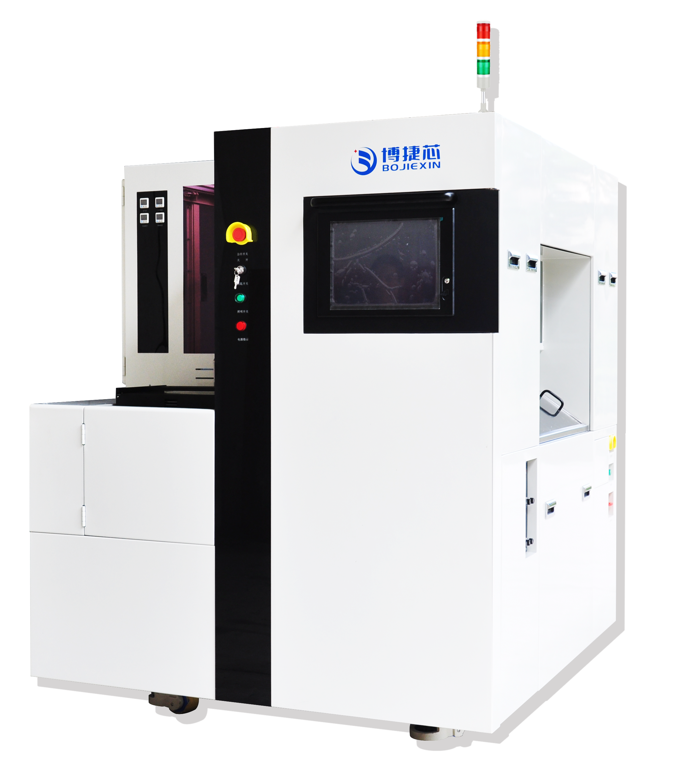 博捷芯BJX3666A机型在Mini/Micro LED领域PCB加工中优势显著,其定位精度达0.0001mm,切割精度±1μm,融合AI算法与机器视觉系统,可实现切割路径实时校准、刀破损检测及自动修磨法兰功能,通过优化切割参数将良率从99.2%提升至99.8%,有效降低单位制造成本。在5G通信、人工智能设备的PCB加工中,该机型与BJX6366的微米级精度的精准配合,可完美满足细间距线路、多层堆叠结构的切割需求,助力电子封装技术向更高集成度演进。